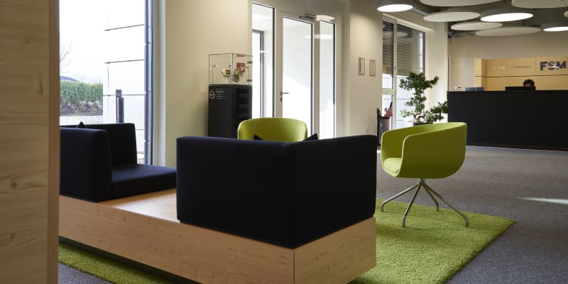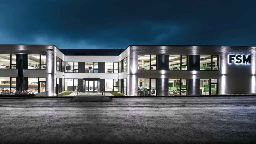 Der Neubau des Firmensitzes der Firma FSM wurde in Zusammenarbeit mit dem Architekturbüro Centraplan, dem Elektroplaner Tritschler und der Bauherrschaft erstellt. Eine besondere Herausforderung war die Anpassung der Lichtsysteme an die akustisch wirksamen Deckenelemente im Bürogebäude. In der Fertigungshalle war ein hochwertiges LED-Lichtsystem mit langer Lebensdauer (mindestens 50.000h L80/B10) der Maßstab. Die Fassadenbeleuchtung sollte die Architektur bei Nacht akzentuieren und in Szene setzen.