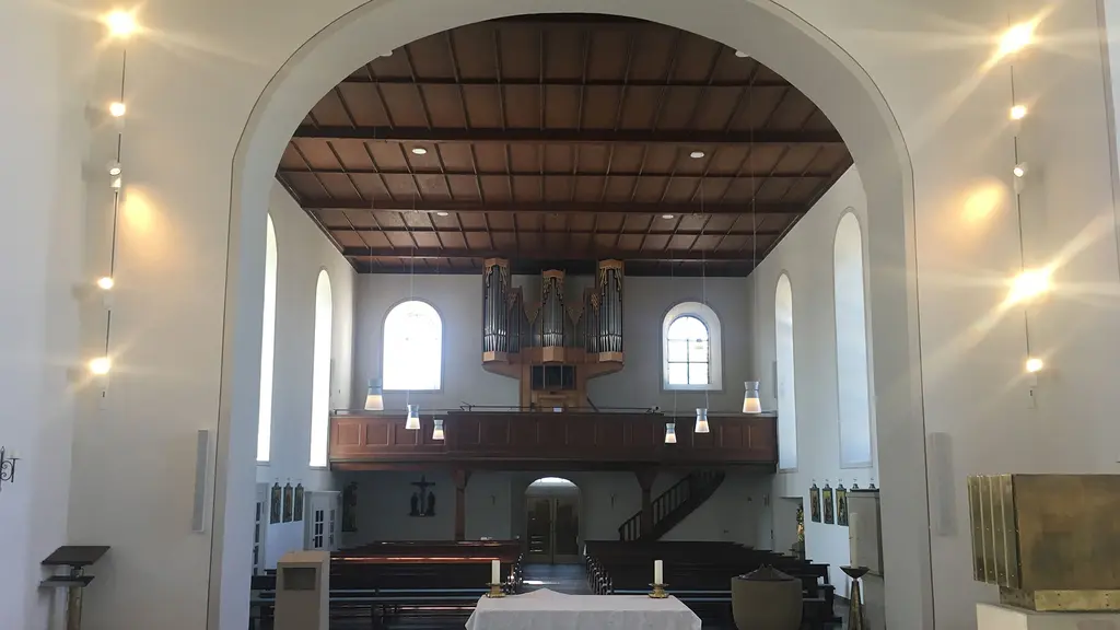 Nach dem Austausch der alten Bestandsbeleuchtung strahlt die katholische Kirche im schönen Steinenstadt. Mit neuester LED-Technik und DALI Livelink-Steuerung bieten unsere Leuchtexperten die Möglichkeit, die Beleuchtung selbständig zu ändern.