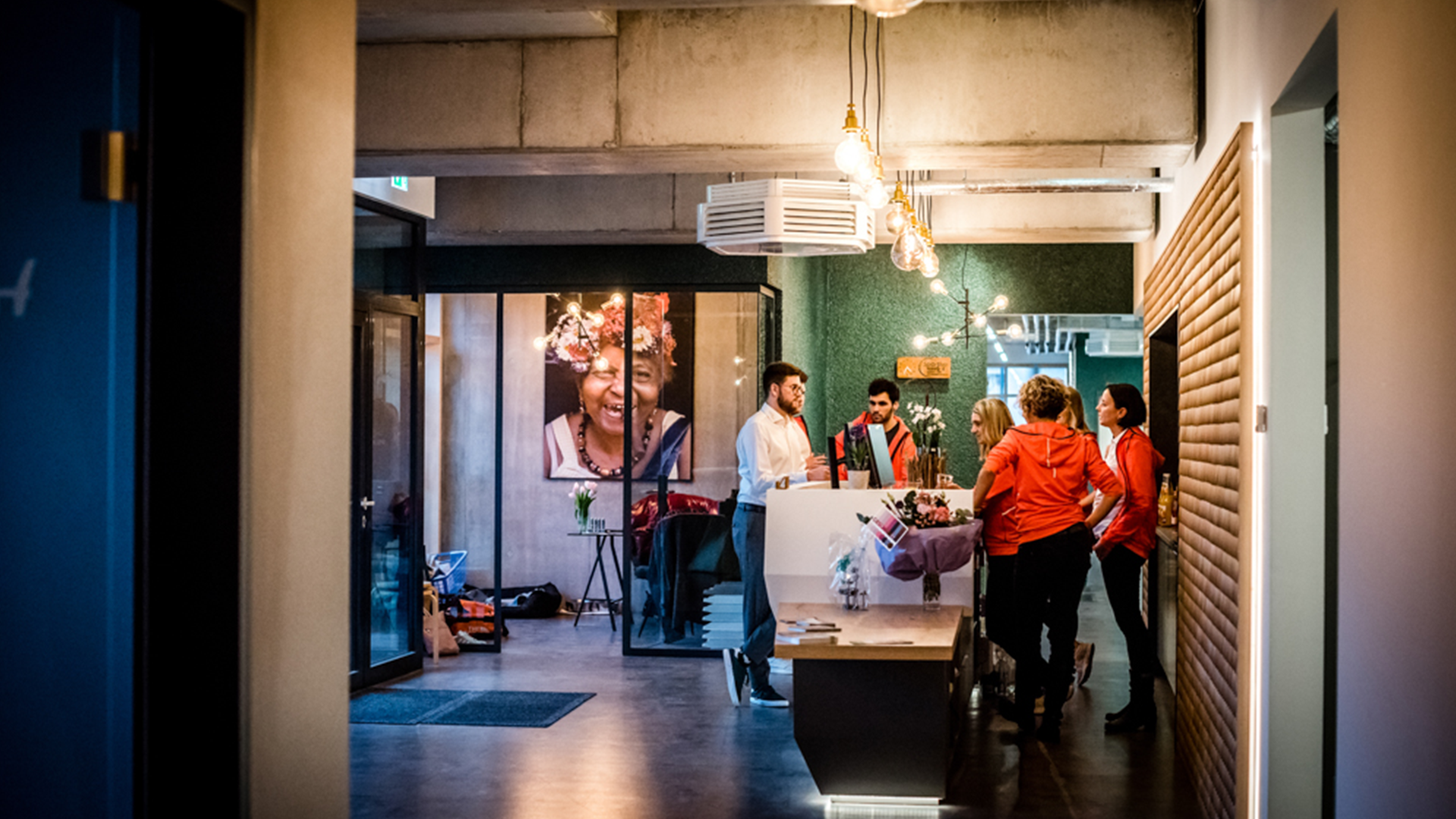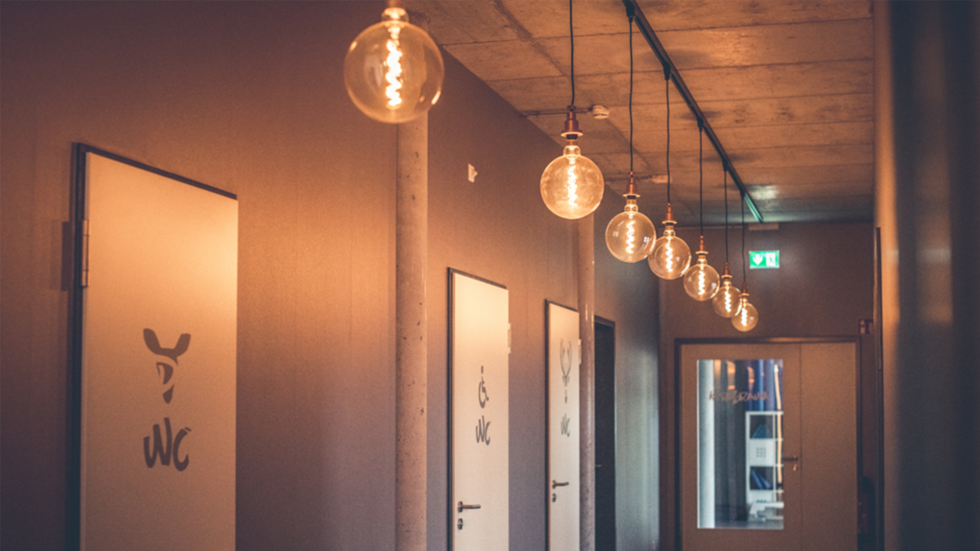Im Empfang wurden Leuchten an Stromschienen mit Vintage-Filamentlampen eingesetzt. Durch die warme Lichtfarbe kommen die Holzelemente der Inneneinrichtung wie gewünscht zur Geltung. Es wurden sehr hochwertige LED-Leuchtmittel eingesetzt, die sich deutlich von vielen Martkbegleitern in Sachen Dimmverhalten und Langlebigkeit unterscheiden. Im Kurs- und Fitnessraum wurden dimmbare LED-Lichtbänder in schwarz eingesetzt. Durch die leicht vorgesetzte Opaloptik verteilt sich das Licht blendfrei im Raum und die Decke wird mit dem leichten Indirektanteil dezent aufgehellt.