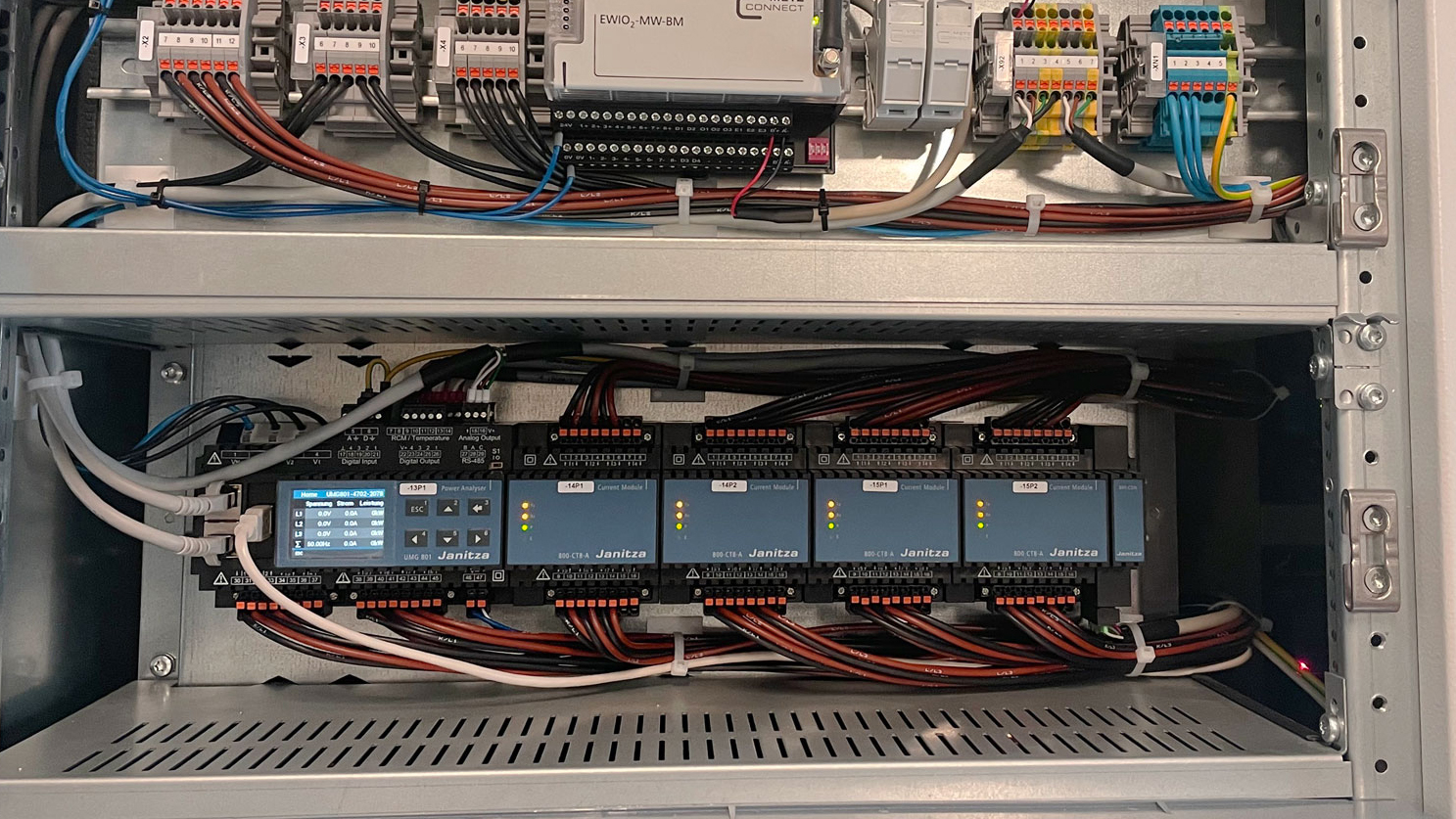 Nachträglich setzte Metz Connect in Eigenleistung den eigenen, leistungsstarken Datenlogger EWIO2 aus der C|Logline für die Energie- und Verbrauchsüberwachung sowie das Datenmonitoring ein. “Damit können wir jeden Abgang detailliert überwachen und die aktuellen Lasten auf der Verteilung analysieren. Bei auftretenden Problemen oder zur regelmäßigen Kontrolle kann Herr Merz die aktuellen Lastwerte überprüfen und sich diese über die Software NodeRed anzeigen lassen.” sagt Phillip Schröder, Energiemanagement-Beauftragter bei Metz Connect.